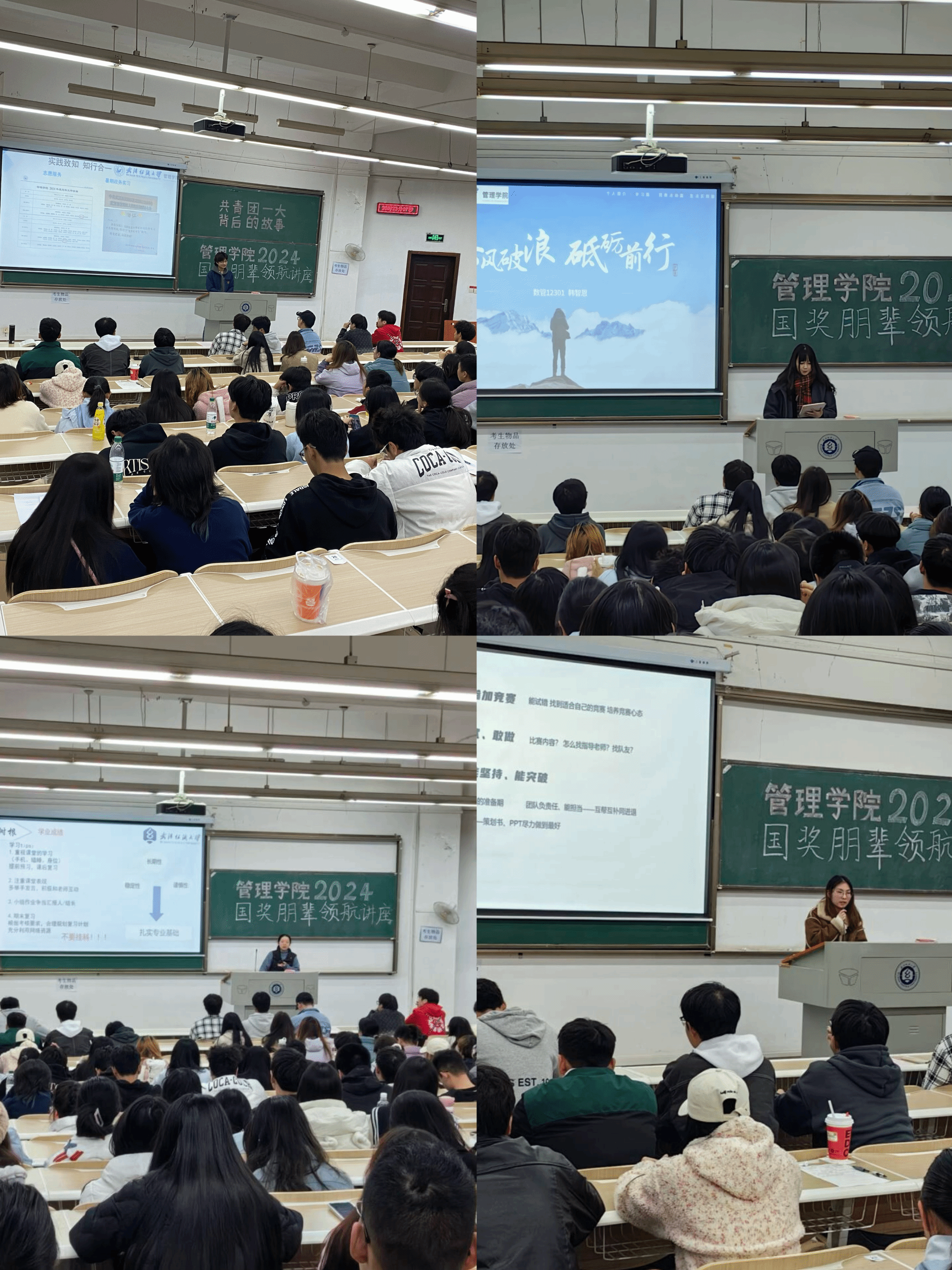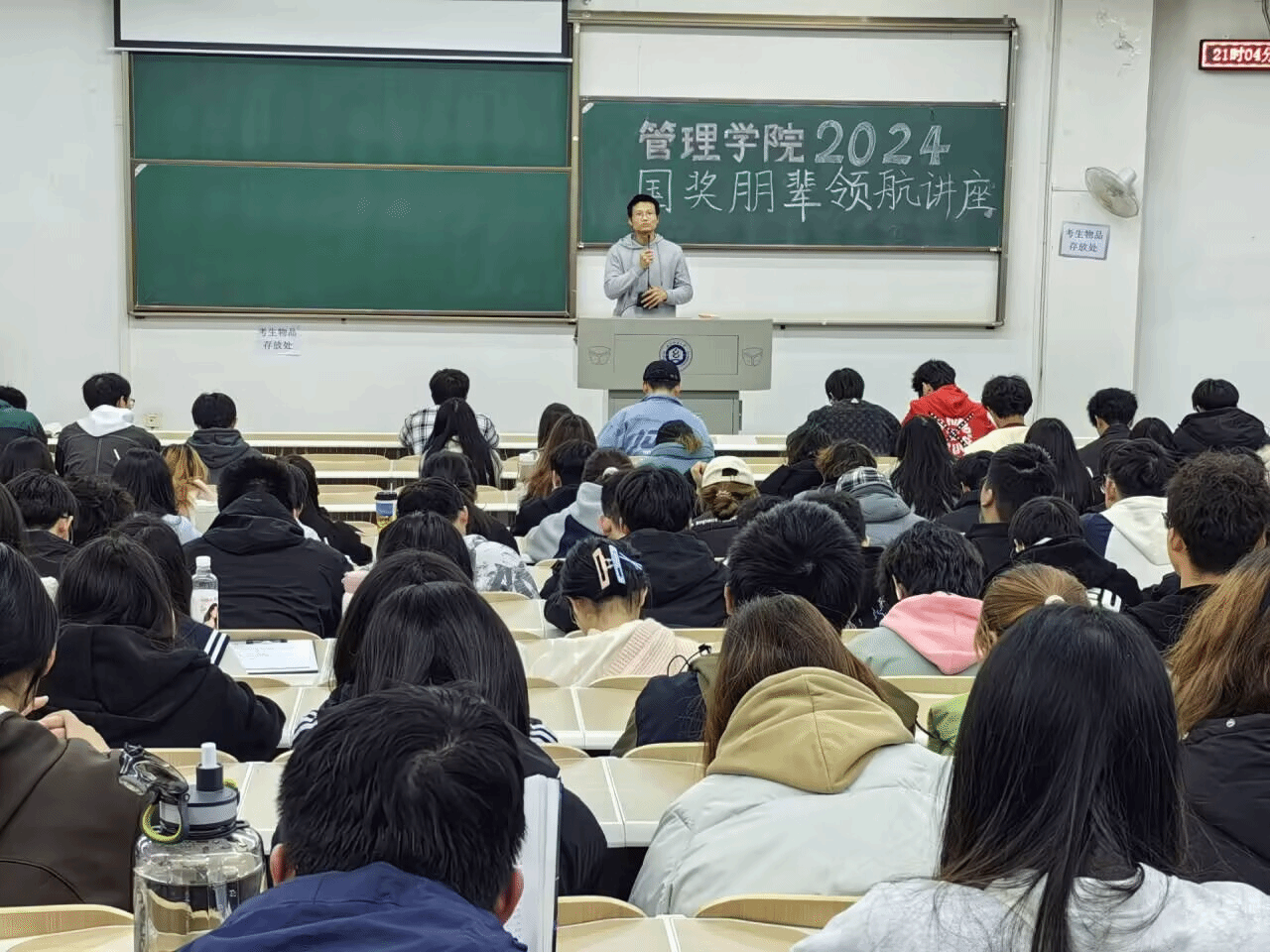 12月8日,beat365官网中文版本于崇志楼T101教室开展主题为“头雁领航,见贤思齐”的国家奖学金朋辈领航分享会,旨在通过优秀员工的经验和心得,激励管院学子追求卓越,实现自我提升。会议由2024级辅导员许清纯主持,2024级全体新生参与了分享会。本次分享会邀请了公司2024年四位国家奖学金获得者从不同维度分享了他们的心得体会,为在场员工提供了宝贵的学习机会。