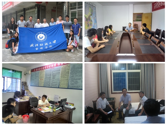 抵达目的地后,师生们不顾夏日细雨立即投入工作,发放调查问卷的同时与当地群众交谈,获得大量真实有效的信息,并走访县委宣传部、司法局、工商局、人社局等党政机关和事业单位,查看了解信息公示制度的实施。在实践调查期间,县委组织部及人社局等单位的领导到实践小组成员的住宿地点进行看望,对实践活动给予支持与肯定,并鼓励和欢迎更多的老员工来浠水县进行实习实训和社会实践。