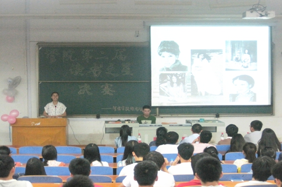 通过初赛复赛层层选拔,最终有12组同学进入决赛,决赛由读书心得PPT展示和文学知识问答两部分组成。参赛选手们向大家分享了各自的读书历程、读书心得。2号选手胡晓婵读三毛,品人生,她讲到三毛是贯穿她青春的人物。从平淡的文字中感受心中的波澜壮阔,受益匪浅让读者走得更高更远。9号选手程硕用优美的声音介绍了读《林徽因传》的感受,从阅读中她感悟到要做一个简单平和、内心澄明有思想的女子,要为自己的梦想而努力,虽然不能像她一样优秀,但为了自己的梦想要执着坚持。部分选手还结合自身读书经历总结了读书的技巧和经验与观众一起分享。简单的阅读带来的是一场思想火花的碰撞与交流。