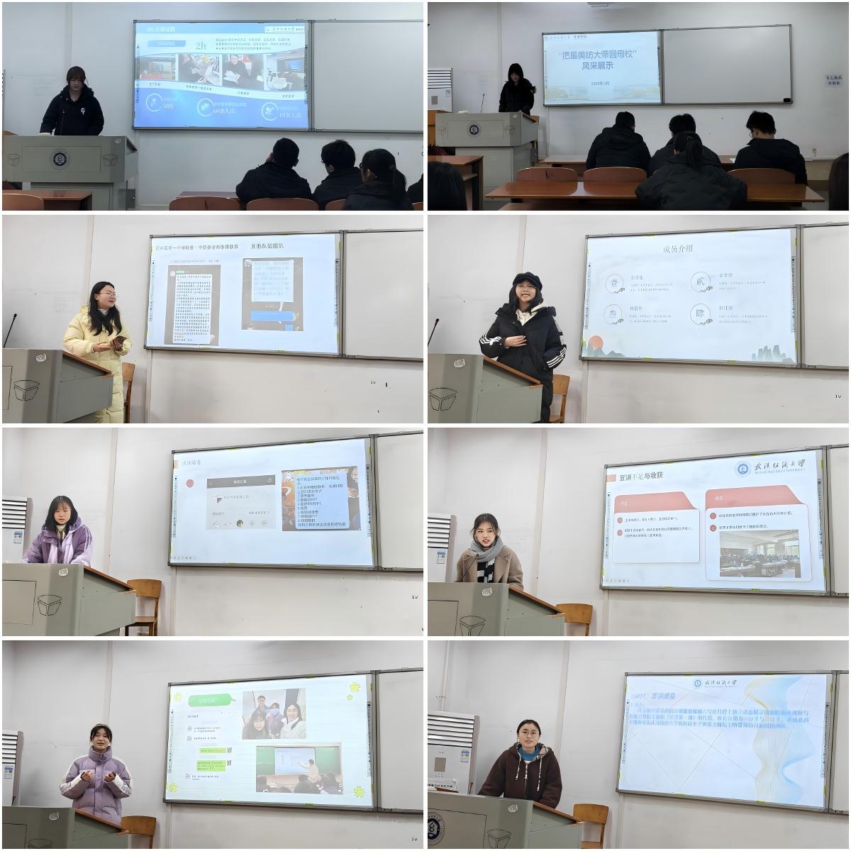 3月3日中午,第七届“把最美纺大带回母校”寒假社会实践活动公司初赛在3-103教室顺利举行。本次活动旨在通过员工社会实践的形式,展现纺大风采,弘扬校园文化,为员工提供锻炼自我、回馈母校的平台。公司辅导员谢超、陈宇凡、许清纯、高天麒、牟迪担任评委。