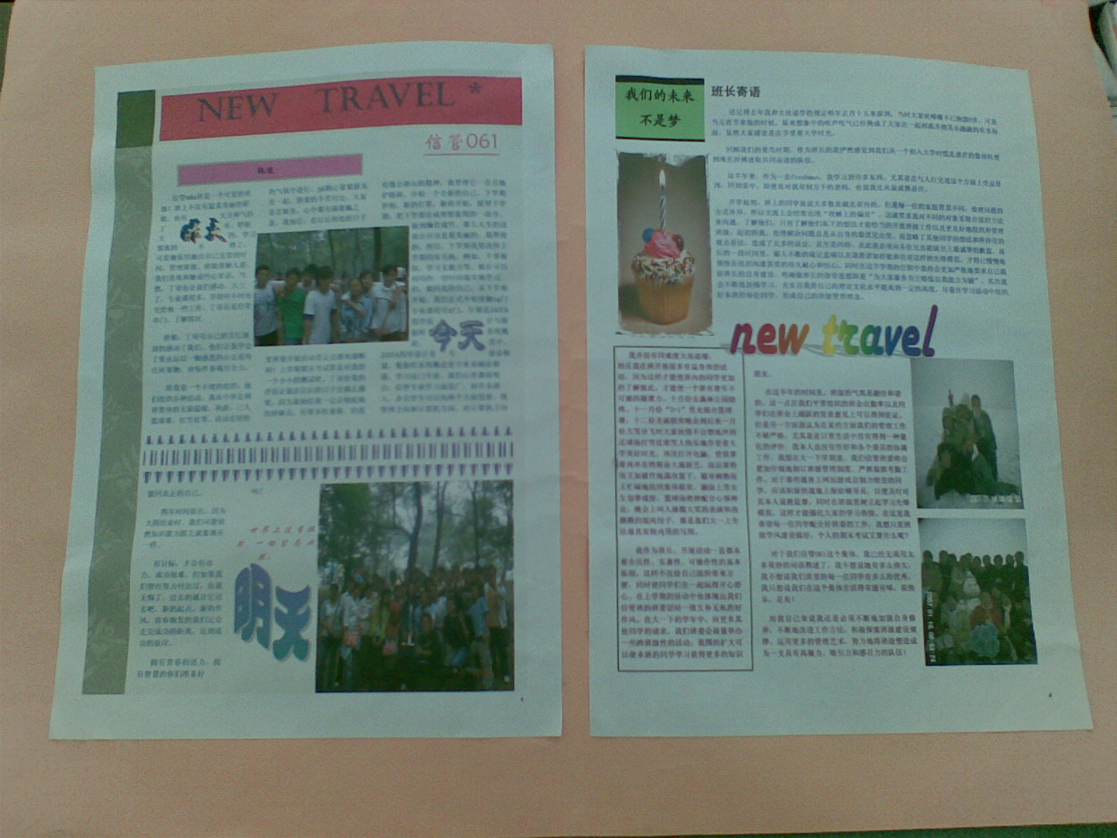 3月26日,公司大一各班以“new travel”为主题的团报在阳光校区食堂侧门口成功展出。此次共收到20余副由班级同学制作精美,内容丰富的作品。