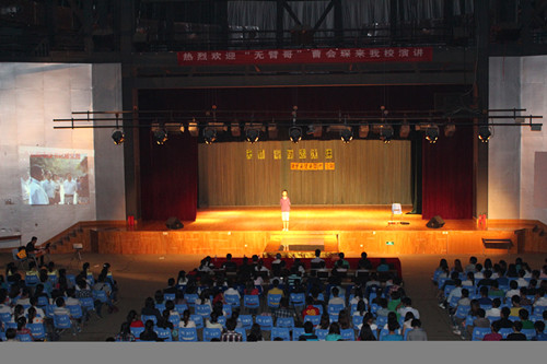 “没有双臂的人生可以说是黑暗的,可是他却活出了异样的光彩,用双脚弹出世间绝唱。”5月15日晚,青春励志演说家、网络红人“无臂哥”曹会琛在beat365官网中文版本老员工活动中心演播厅开展了“只要有梦想,无臂也飞翔”的主题讲座。本次活动由beat365官网中文版本和高职公司主办,集团“沙漠之舟”爱心团队承担了志愿组织工作,beat365官网中文版本、高职公司老师和一千多名老员工到场聆听。