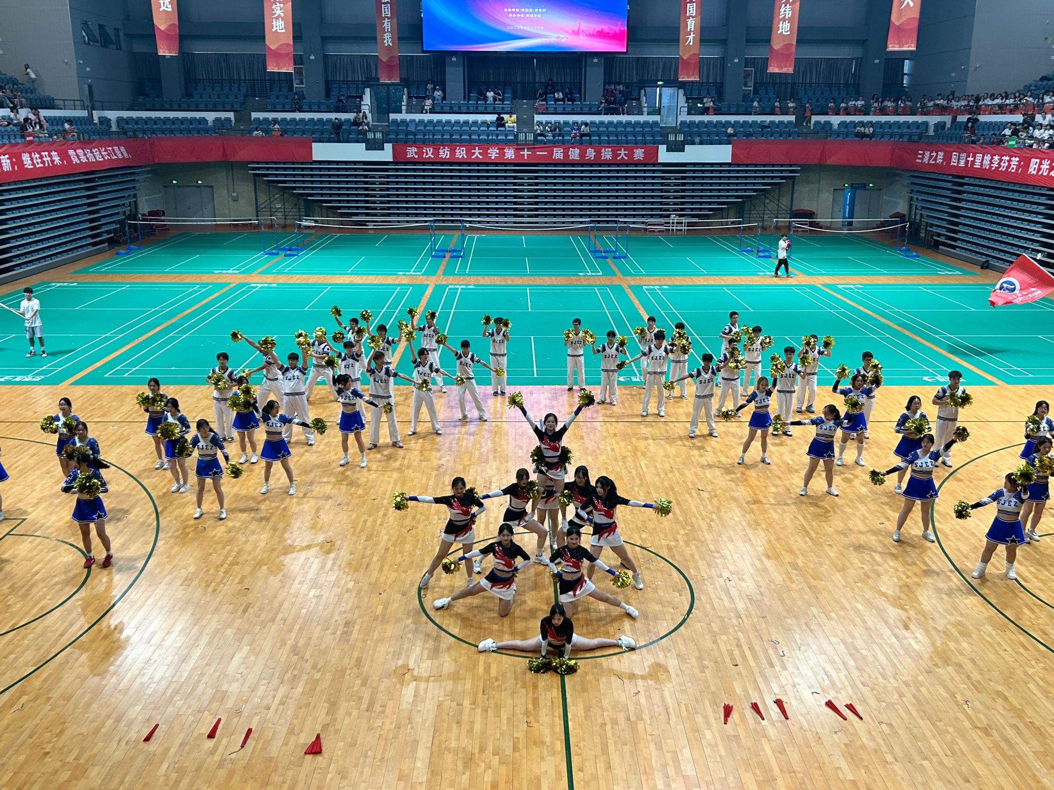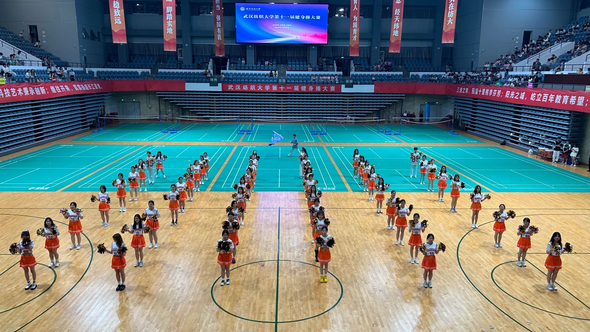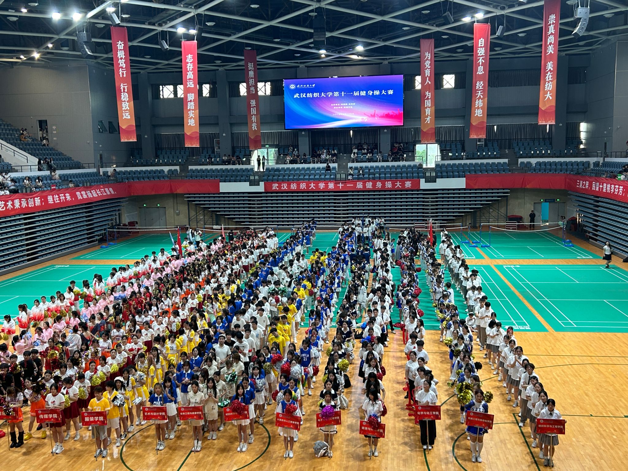 近日,由校团委、体育部主办、beat365官网中文版本承办的第十一届beat365官网中文版本健身操比赛在公司阳光校区体育馆如期举行。公司党委副书记、副董事长罗锦银莅临现场指导,校团委、体育部、beat365官网中文版本等职能部门领导和公司负责人以及各公司副书记出席活动,与2000余名师生共同见证这场展现纺大青春风采的体育盛会。