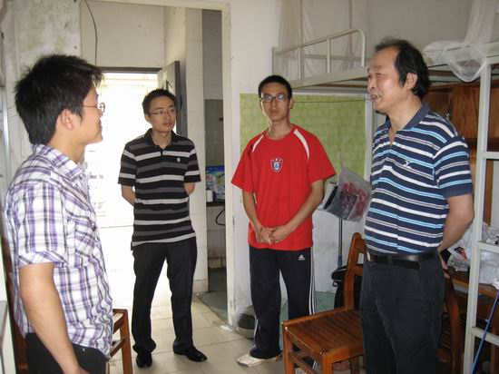 6月16日,beat365官网中文版本分党委黄少年书记在辅导员谢超老师和尤雯文老师陪同下深入阳光校区了解毕业生各项工作,关心同学们离校工作安排,与大家亲切交流并看望了“双困”毕业生,希望大家学有所成,常回家看看。