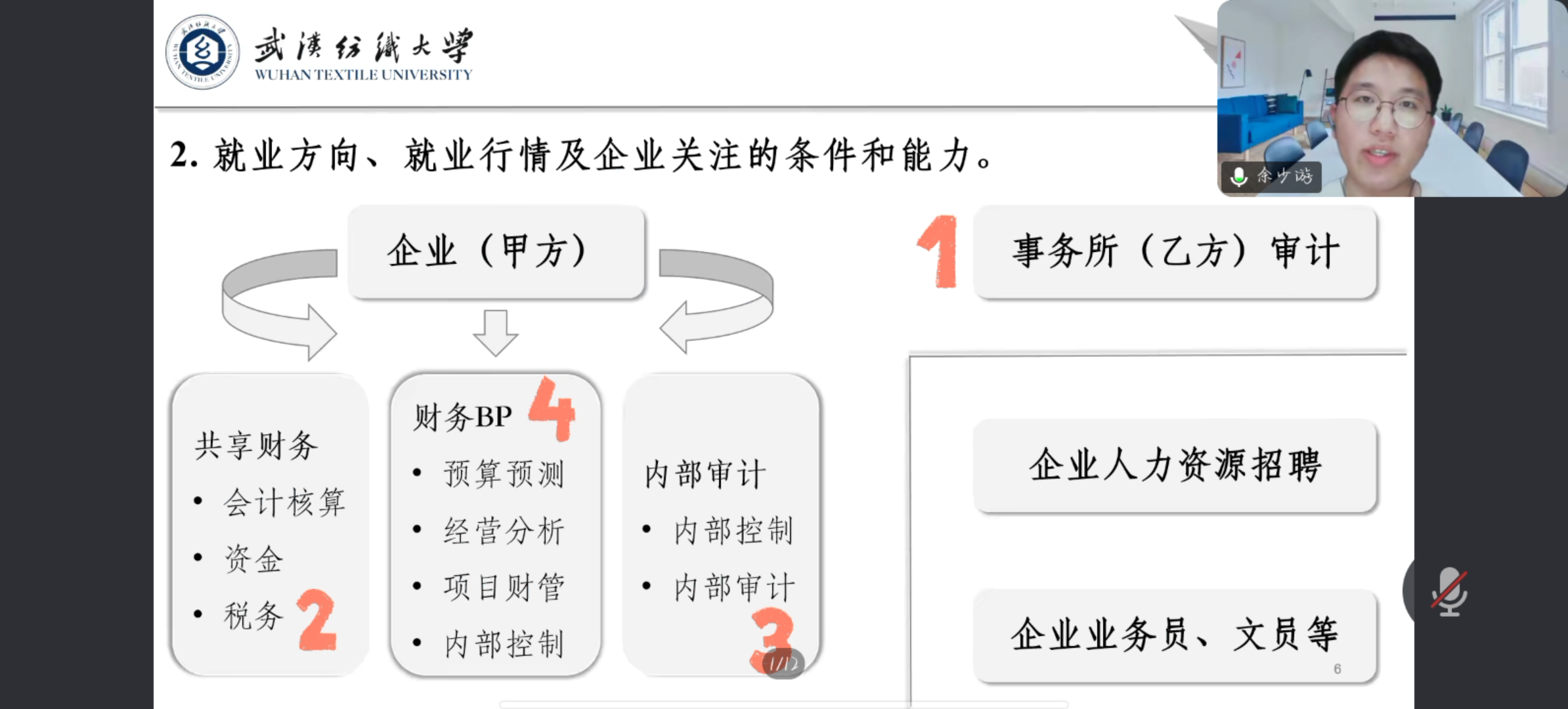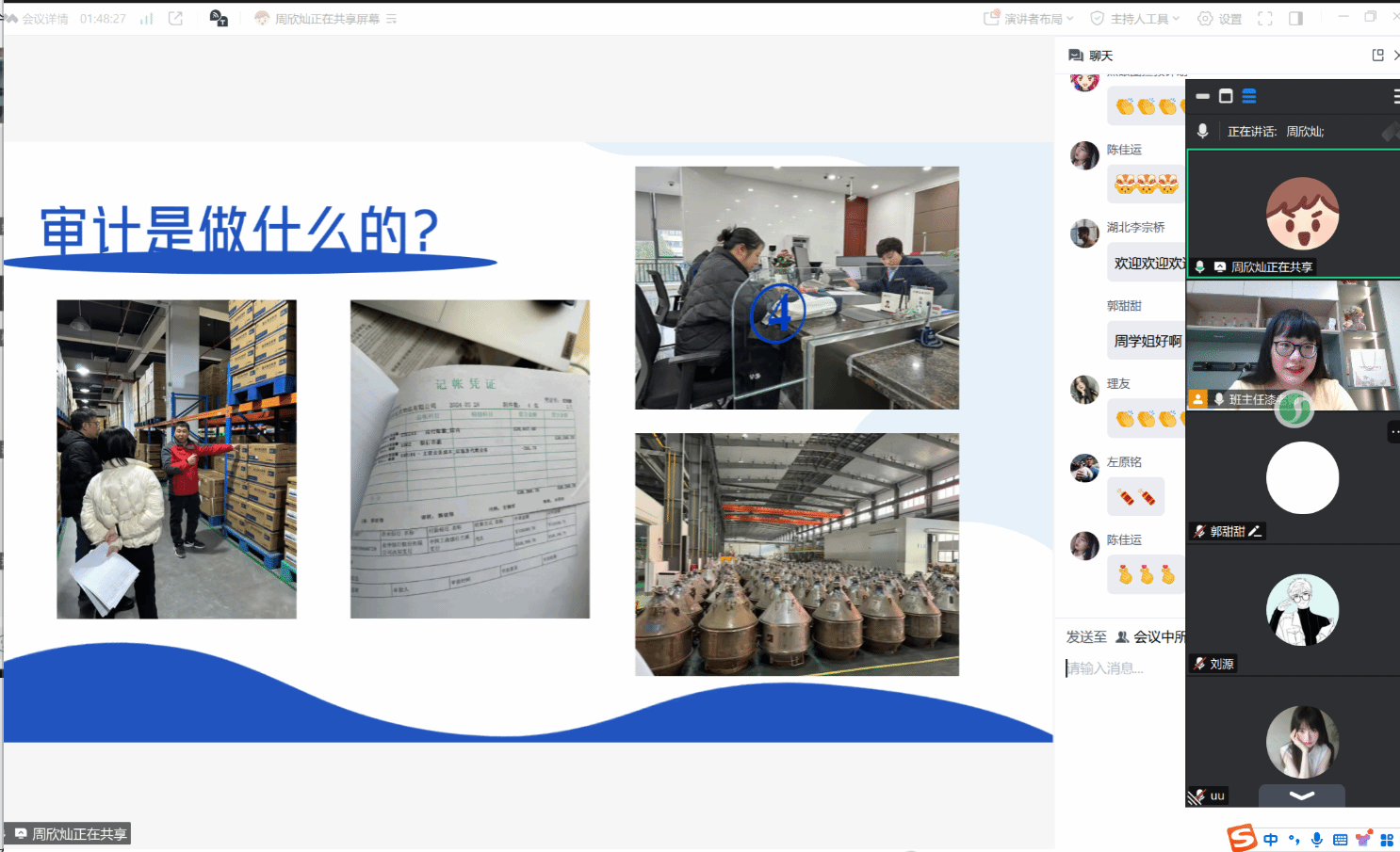 周欣灿学姐以本土八大所之一的天健会计师事务所实习和审计工作内容为例,讲述当前大环境的就业形势,同时为CMA学子仔细介绍了审计相关工作的内容,帮助同学们了解会计事务所的具体工作以及职场所需要的实用技能,为迈向职场打下坚实基础。