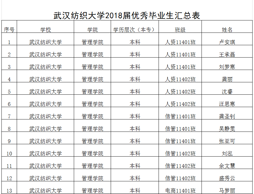 经员工个人申请、班级民主评议、公司评定工作小组审核,评选出卢安琪等31位同学为公司2018届优秀毕业生候选人获奖名单现予以公示。