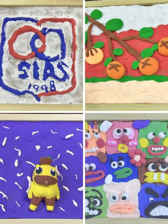 有的同学以橙褐为主色调,精心雕琢出“柿柿如意”的吉祥图案,圆润的果实、舒展的枝叶,每一处细节都饱含着对生活的美好期许;有的同学则巧用缤纷色彩拼贴出“SIAS”字样,鲜明的色彩搭配传递出直抵人心的治愈力量;还有同学发挥奇思妙想,塑造出憨态可掬的小动物、浪漫唯美的风景、抽象灵动的造型,指尖的创意在相框中渐渐成型,每一件作品都独一无二、充满个性。原本安静的会议室不时响起阵阵轻松的笑声,欢声笑语中,压力与疲惫悄然消散。