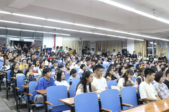 10月7日晚上19:30,beat365官网中文版本乐言辩论队在03-T102为2018级新生呈现一场精彩、激烈的辩论表演赛。本次辩论赛以“佛系 是不是当今社会的幸福之道”为题展开辩论,乐言辩论队成员和大一全体新生到场观看。