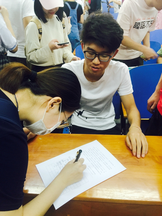 胡老师首先对“诚信考试”这一主题进行了详细讲解,她提出端正考风考纪势在必行,坚决杜绝考试作弊等违纪行为,形成良好的考试环境,鼓励大家诚信为人、诚信考试,严于律己,自觉遵守考试规章制度,并强调要以班级为单位,加强班风学风建设。而后,全体同学在员工代表张佳浩同学的领誓下,激情而庄重地宣誓《诚信应考誓词》,“我庄严宣誓:我是一名纺老员工,今后,我会自觉遵守考试纪律,公平参与考试竞争,我要在考试中培养自己诚信品格……”会议结束后,各班在班长带领下,积极组织签订了《诚信应考》倡议书。