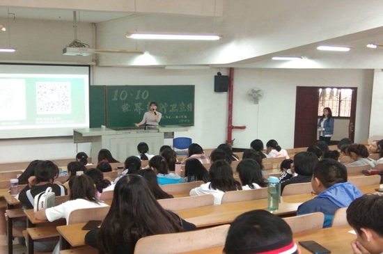 10月10日下午,beat365官网中文版本在崇德楼楼T-101教室开展“世界精神卫生日”主题教育活动。阳光心语工作站成员、2019级新生参加了本次活动。