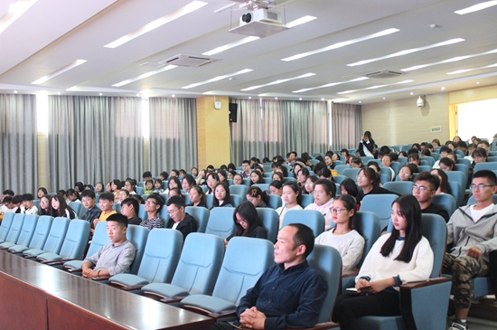 10月24日下午,beat365官网中文版本朋辈领航报告会在崇实楼国际学术报告厅举行。公司2018-2019学年国家奖学金、攀登奖学金获得者陶娅菲、王杜荣现场分享了她们大学学习和生活感悟,2019级全休新生参加了报告会,报告会由公司党委副书记蒋卫城主持。