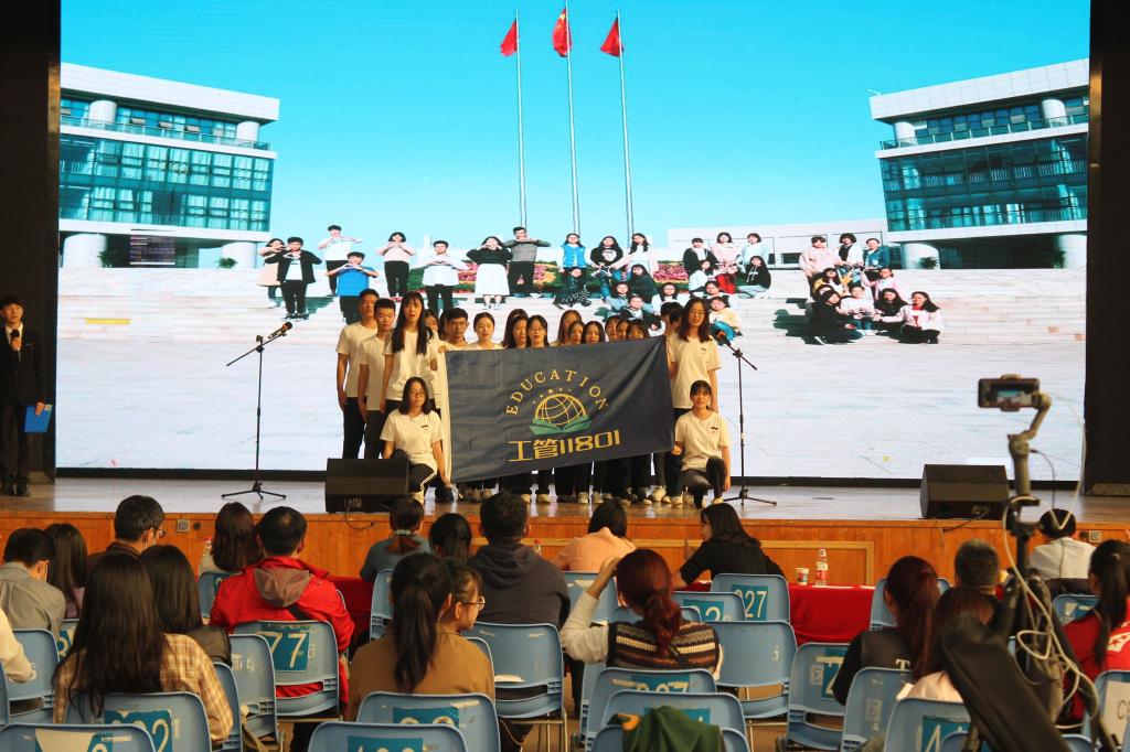工管11801团支部在主讲人张世姣和班长杨洋的带领下以“不忘初心、牢记使命”为主题,结合班级支部和个人学“习”成果,通过原创诗歌朗诵、现场演唱等方式,配以背景音乐、PPT等多媒体进行辅助展示,讲述了工管11801学子的青春故事、时代责任和精神风貌。短短八分钟,工管11801班将支部风采展现的淋漓精致。最终,以91.3的高分荣获2019-2020学年“十佳班团”三等奖。