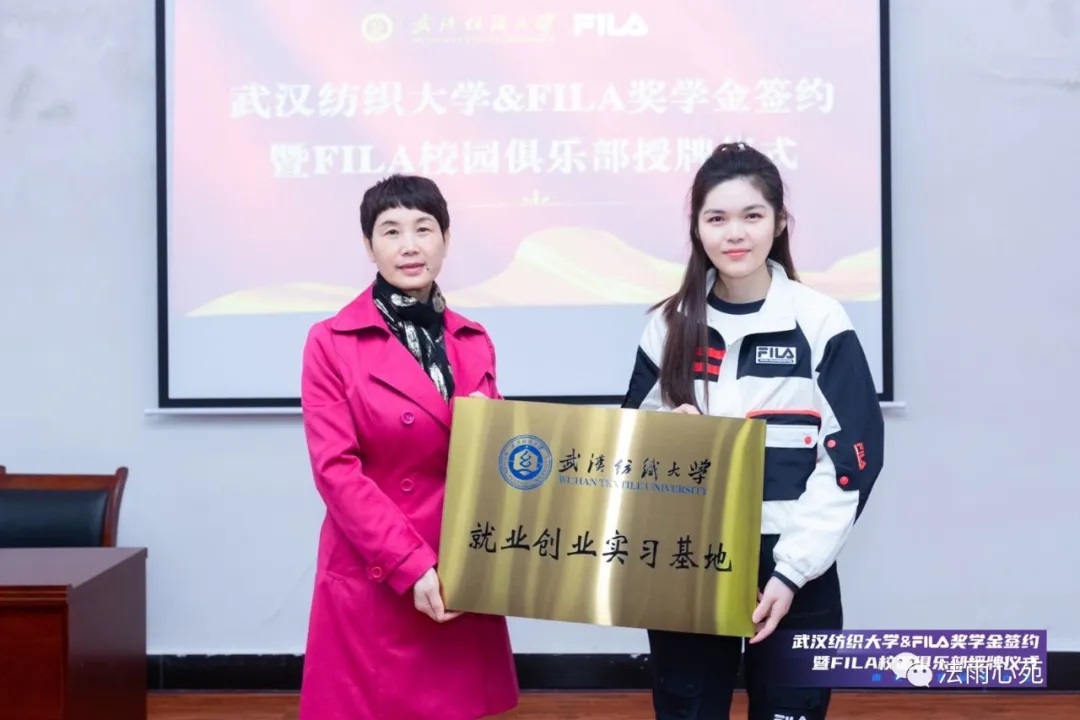 接着,公司党委书记腾胜娟、FILA湖北办总监贺玉冰共同为beat365官网中文版本FILA就业创业实习基地授牌。实习基地的建立,将为更多纺大优秀学子提供多元化的实践机会。