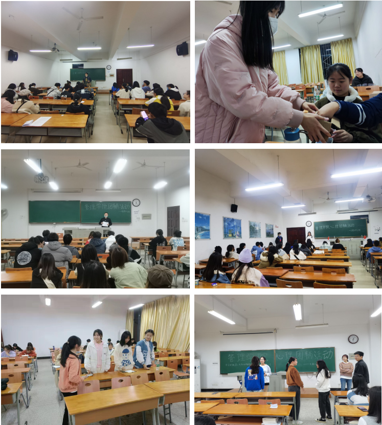 此次活动,各年级分别以“适应大学、融入集体”“如何减轻考试压力”“我运动、我健康、我快乐”等主题开展班级团体心理辅导。活动刚开始,同学们在自我介绍、游戏和文艺表演等多个环节中,一展青春活力。低年级员工,主要以“适应大学、融入集体”“我运动、我健康、我快乐”等主题,彼此之间相互交流,其中21级工管6班员工组织开展“写下我眼中的你”活动,让班级同学进行相互评价,写出评语,同学们欢声笑语,团辅活动让彼此拉近了距离。高年级同学主要讨论“如何减轻考试压力”“直面挑战、筑梦未来”等主题。面对期末考试、考研、考公的压力,同学们相互交流和学习,在紧张的学习中能够静下心来,回想自己的初心,此次团辅活动让大家静下心来,畅所欲言,缓解了各年级员工的心理压力。