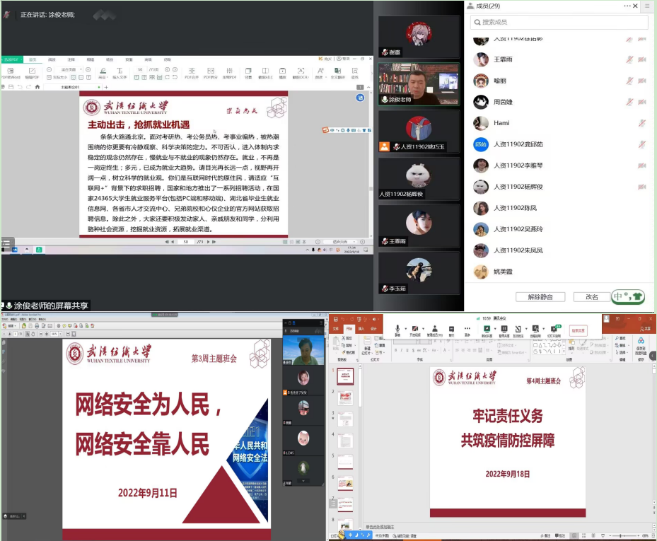 在本次班会上,各班级辅导员、班主任对实习就业工作做了详细介绍,以《致2023届毕业生的一封信》为主题,提示同学们毕业季少走弯路,认清形势,科学定位有目标;主动出击,抢抓就业机遇;愈挫愈勇,风雨之后有彩虹。并鼓励2023届毕业生,行动起来!要胸怀“大有可为”的使命感;保持“时不我待”的紧迫感;以“舍我其谁”的扎实行动;奋发有为,不负韶华,不负时代,不负人民,在青春的赛道上奋力奔跑,争取跑出当代青年的最好成绩!最后,各班班主任提醒外出实习就业的同学一定要主要应聘安全,注意自身防护,提醒在校同学,非必要不外出,在校遵循公司规章制度。做好疫情防护的同时,更要提高警惕,谨防诈骗、传销,切实保障人身和财产安全。会后,班主任对本班同学提出的问题进行一对一答疑解惑。