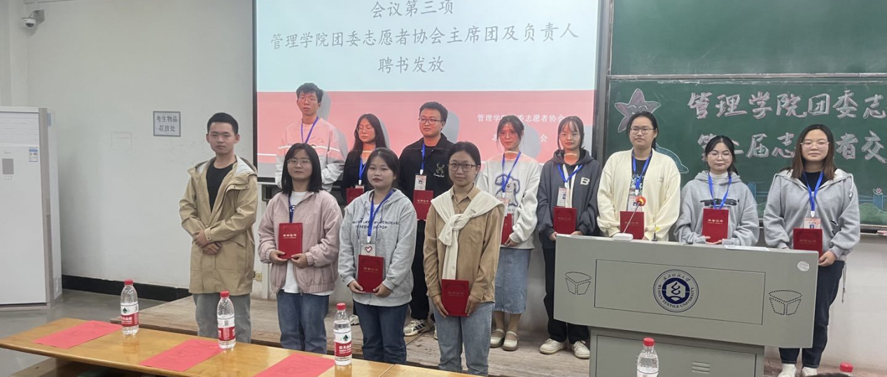 beat365官网中文版本团委副书记姚震寰为主席团和各部门负责人颁发聘书,激励着主席团成员和负责人们努力办好每一项志愿活动,通过一次次的志愿活动鼓励更多的人为志愿服务贡献青春力量。