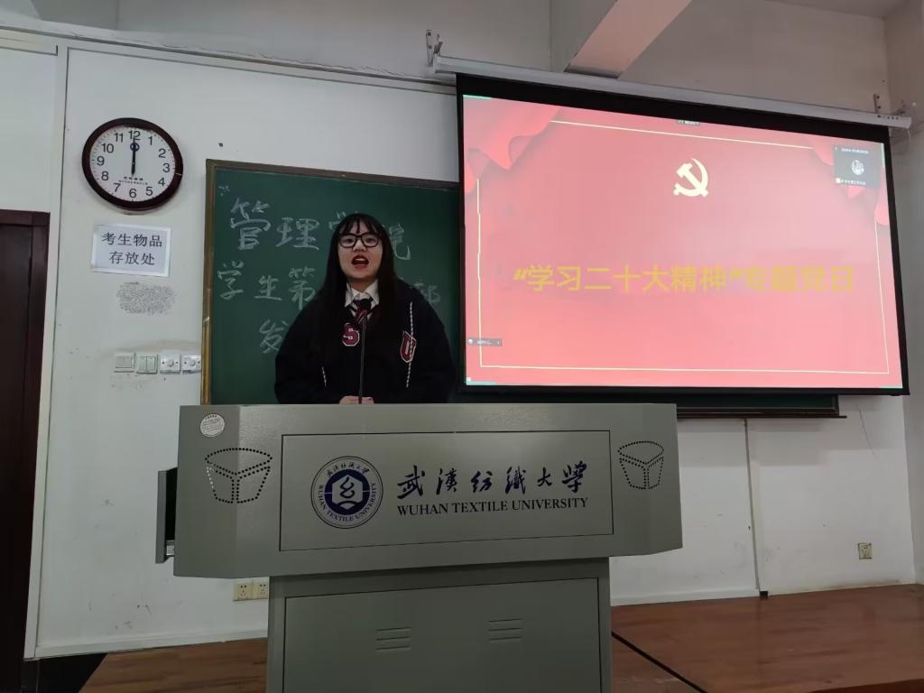为深入学习贯彻“习近平总书记重要讲话精神”,结合“美好纺大党旗红”基层党建活动,beat365官网中文版本员工党支部于2月21日在崇德楼132教室开展2月份主题党日活动。本次活动由员工第五党支部的柏雪同志主持,活动主题是学习习近平总书记在党的二十大精神研讨班开班式上发表的重要讲话精神。