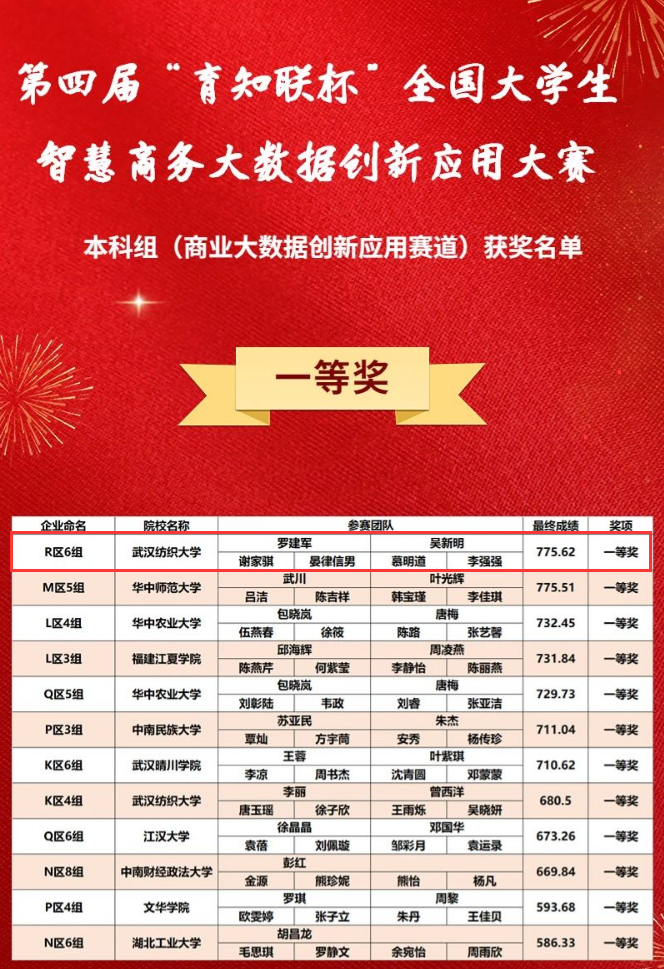 本届大赛以“线上”形式展开。赛事历时5个多月,分为周末网络赛和总决赛。由公司beat365官网中文版本谢家骐、晏律信男、慕明道、李强强4位同学组成的beat365官网中文版本代表队,以突出表现脱颖而出,勇夺“商业大数据创新应用”赛道本科组全国总决赛一等奖。