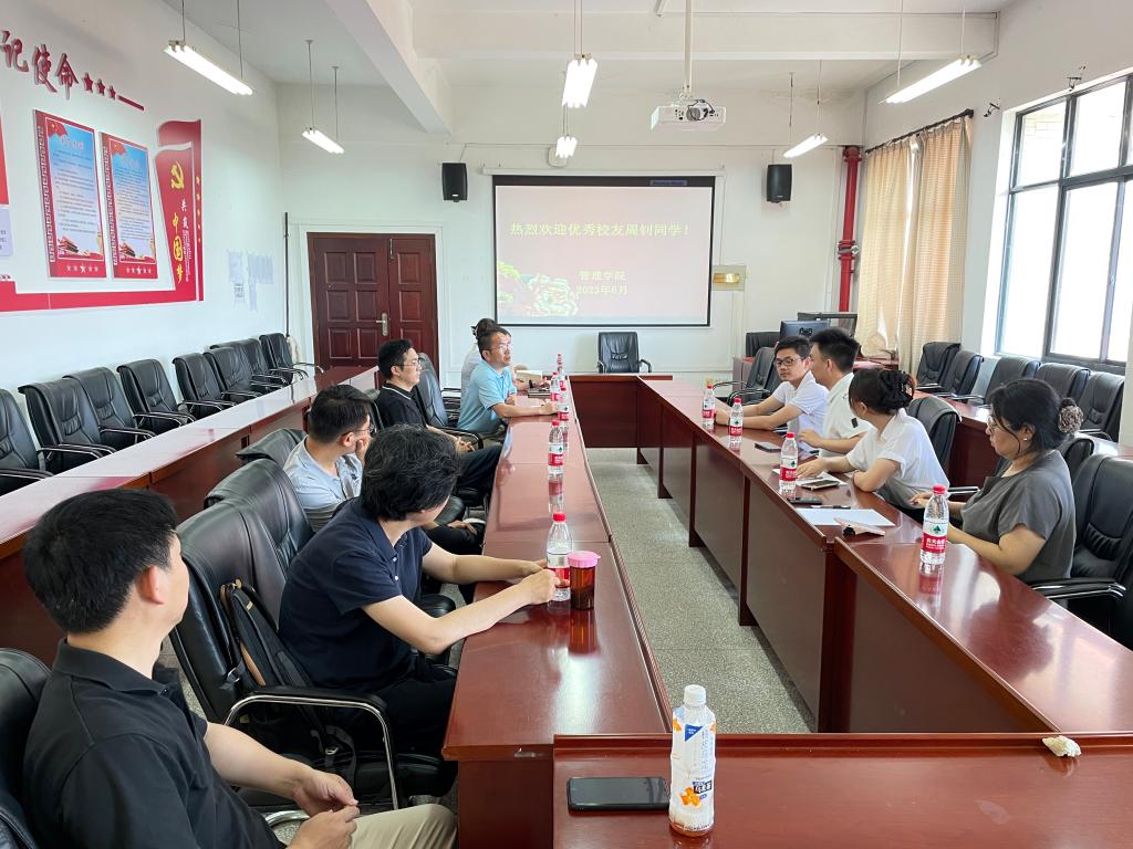 经理吴金红代表公司对周钊员工返校表示热烈欢迎,他希望通过员工与教师代表面对面的交流中,凝聚员工力量,助力公司发展。在产学研合作、毕业生就业等方面取得成效。
