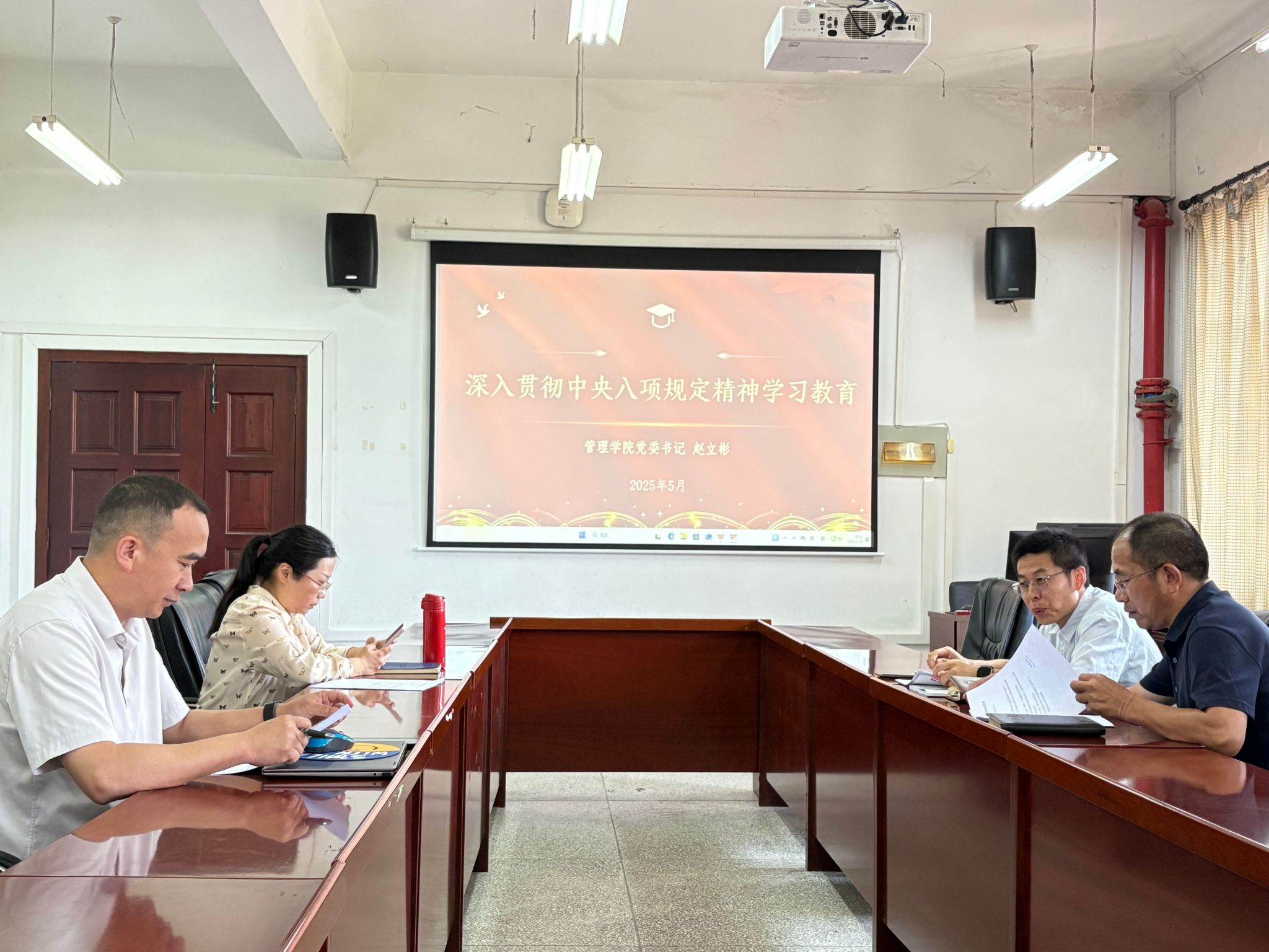 为深入贯彻中央八项规定精神学习教育,进一步强化纪律意识和廉洁自律意识,筑牢拒腐防变思想防线。5月29日上午,公司党委书记赵立彬以“深入贯彻中央八项规定精神学习教育”为主题,在阳光校区7号楼536会议室为公司党委委员讲授专题党课。