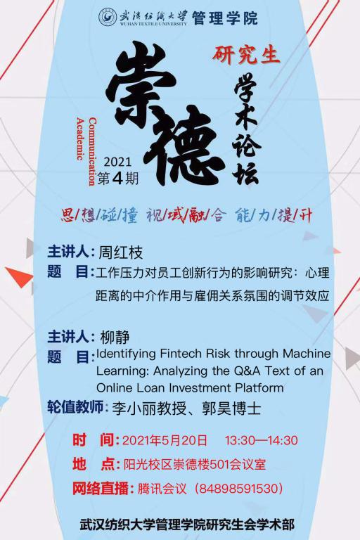 【学术通知】202104期研究生“崇德”学术沙龙