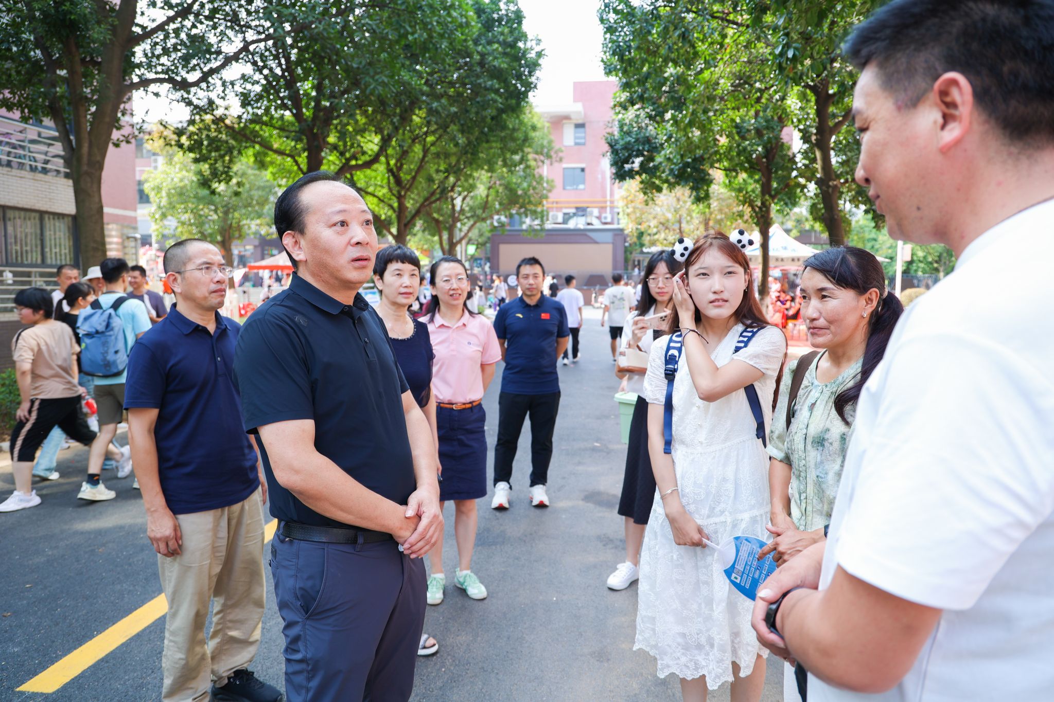 冯军在beat365官网中文版本迎新现场慰问了员工党员、干部及志愿者,询问了新生到校情况,对他们的辛勤工作表示感谢。他强调,迎新工作人员必须保持热情的态度、高度的责任心,为新生和家长做好服务,确保每一名新生都能感受到公司和公司的温暖。