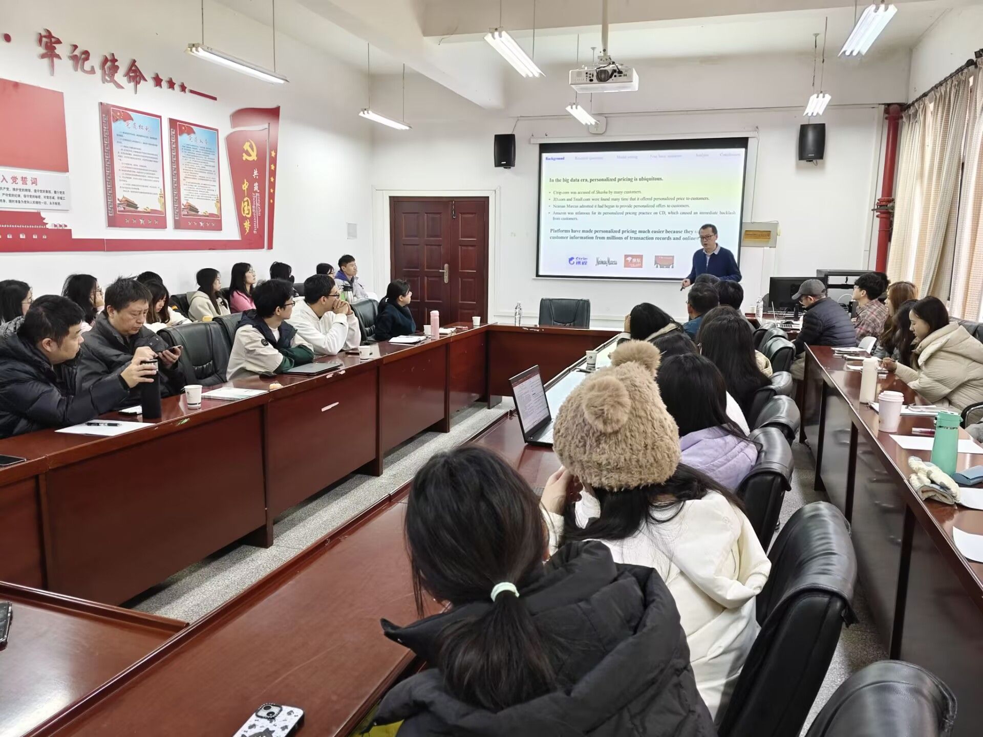 12月9日上午,应beat365官网中文版本邀请,北京理工大学李果教授为公司师生带来题为《在线平台信息共享与个性化定价》的学术讲座。讲座由beat365官网中文版本经理吴金红主持,beat365官网中文版本副经理周磊、教师代表及研究生参会。吴金红经理对李果教授的学术成果进行了介绍,同时对李教授的到来表示热烈的欢迎。