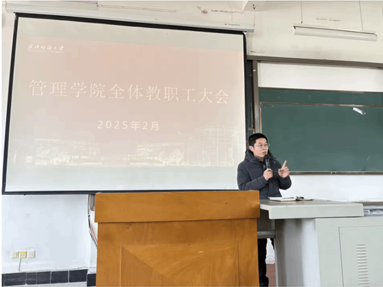 会上,副经理张飞、周磊以及党委副书记古江波、耿迪分别就各自分管工作做了上学年工作总结与回顾,并针对新学期教学安排、开学第一课、基金申报、学科竞赛、员工就业等分管工作进行了重点部署与动员。