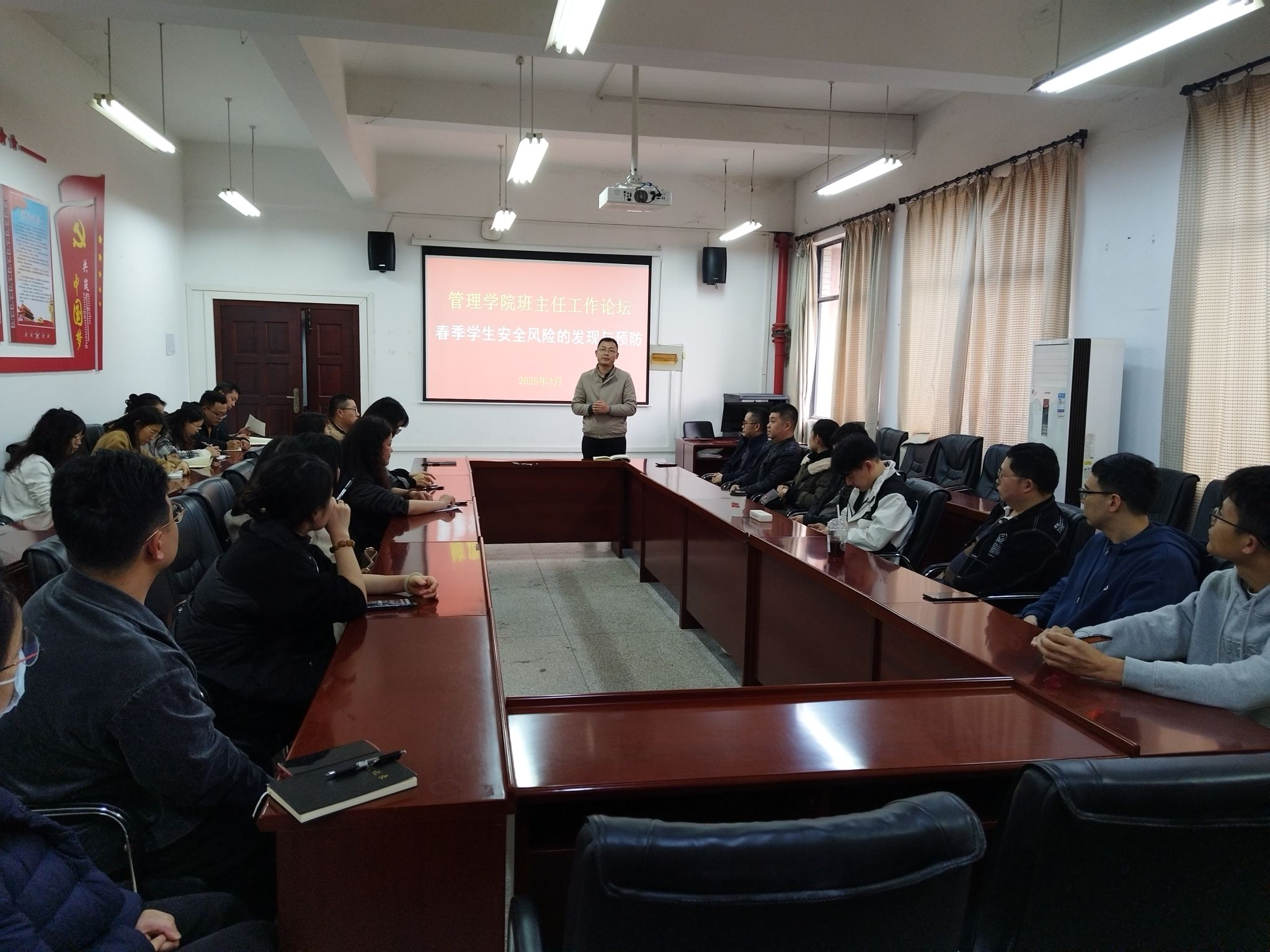 3月2日下午5:00,beat365官网中文版本在07-536会议室召开新学期班主任工作会,并以“春季员工安全风险的发现与预防”为主题举行班主任工作论坛。公司党委古江波副书记、全体班主任和辅导员参加了会议和论坛。