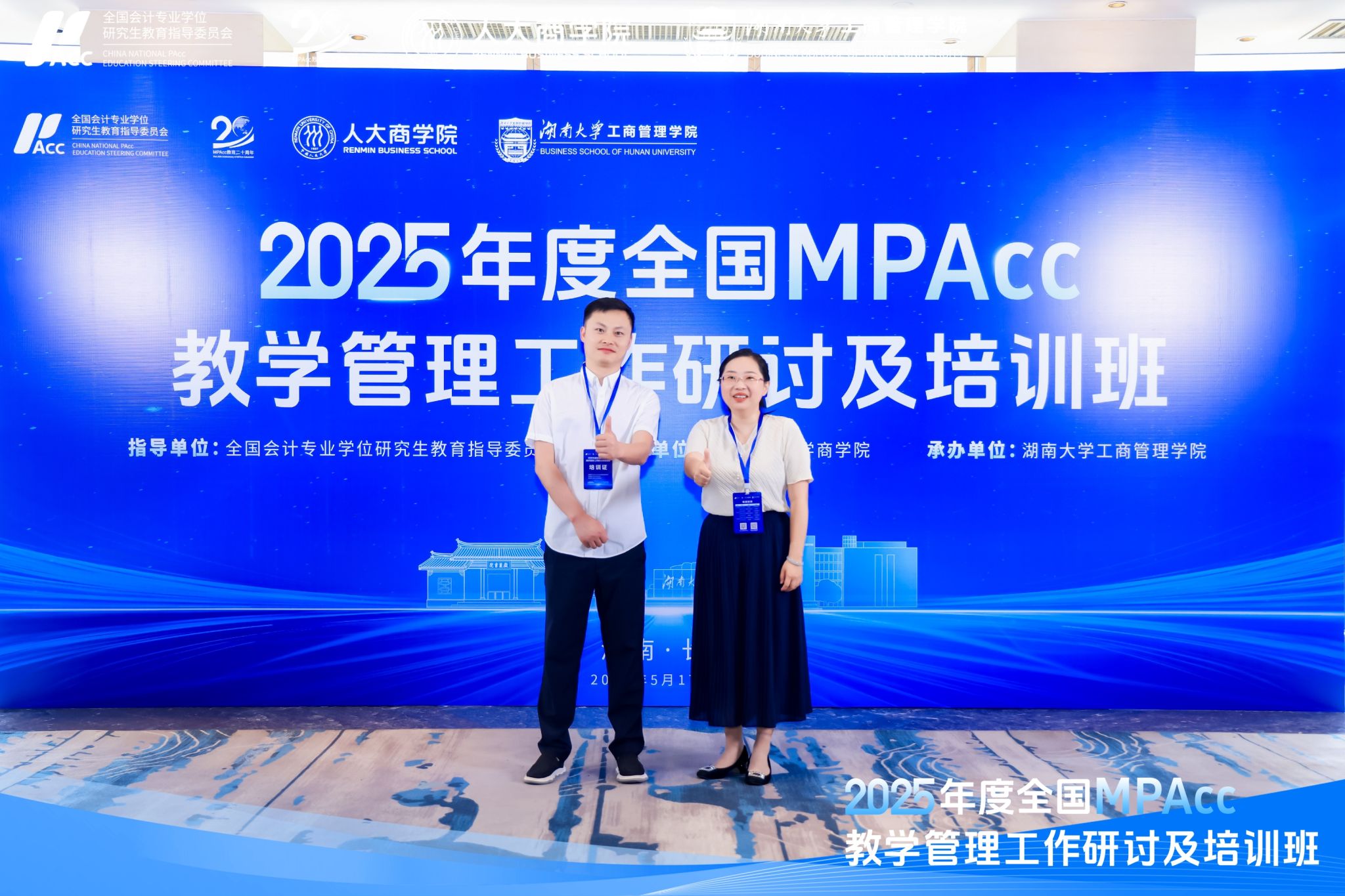 5月17日-18日,beat365官网中文版本副经理周磊,MPAcc中心副主任任俊霖赴长沙参加由全国会计专业学位研究生教育指导委员会主办,湖南大学工商beat365官网中文版本承办的2025年度全国MPAcc教学管理工作研讨及培训会。会议围绕“MPAcc教育工作总结与展望、MPAcc项目服务国家战略需求及实现员工关系可持续发展”等主题展开。