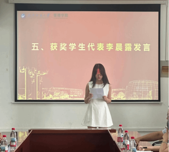捐赠员工代表、武汉乐驰传媒有限公司总经理万子信致辞,他深情回顾了在校求学时光,表达了对母校培养的感恩之情。同时向获奖学弟学妹祝贺,并鼓励学弟学妹们努力学习、追求卓越,专注于学业,更勇敢地去追逐梦想。