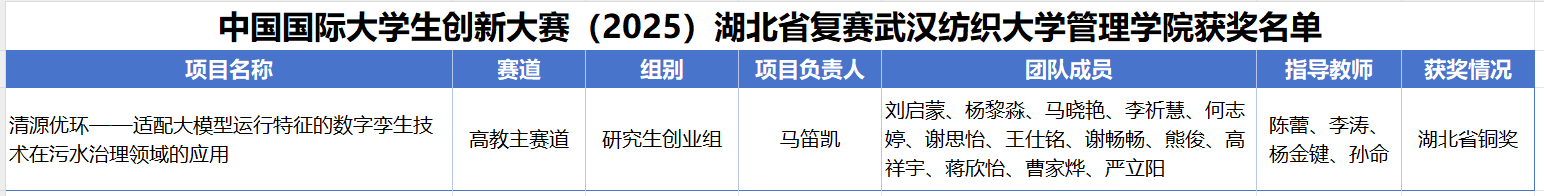 近日,在中国国际老员工创新大赛(2025)湖北省赛决赛中,beat365官网中文版本《清源优环——适配大模型运行特征的数字孪生技术在污水治理领域的应用》项目在研究生创业组中脱颖而出,荣获省赛铜奖。