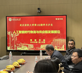 2026年1月10日下午2:30,beat365官网中文版本在阳光校区健全会堂南湖厅成功举办第132期学术沙龙。本期沙龙以“人工智能时代物流与供应链发展前沿”为主题,特邀黄有方、刘志学两位业内知名专家进行分享,共同探讨物流专业当前面临的挑战与转型路径。