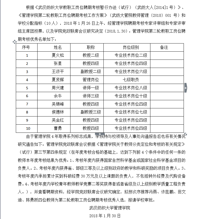 公司动态二轮教职工岗位聘期考核优秀拟报人选名单公示