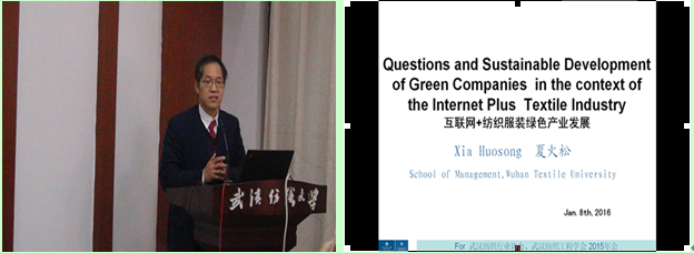 会议期间,武汉纺织行业协会会长、武汉裕大华集团董事长万由顺,武汉纺织工程学会会长崔华英代表主办方高度评价了公司为承办此次会议所做的细致工作。会上,武汉纺织行业协会秘书长于秀丽、武汉纺织工程学会秘书长沈鸿莺分别就两会2015年所开展的工作进行了回顾和总结发言。同时,会议审议通过了常务理事长人选。公司beat365官网中文版本夏火松教授在论坛上作了“互联网+纺织服装绿色产业发展”的主题演讲,获得了与会代表的强烈共鸣。