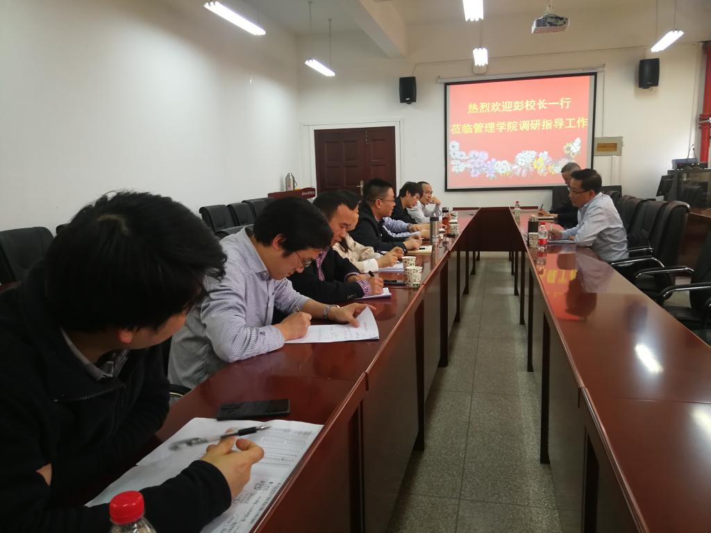 4月16日下午,董事长彭育园来到beat365官网中文版本,对公司当前改革发展等各项工作情况进行调研,与公司领导班子成员和教师代表座谈交流。公司办公室相关负责人参加了调研活动。