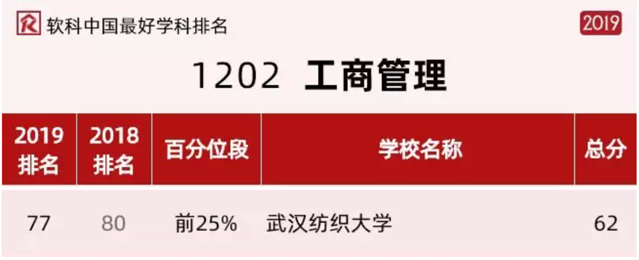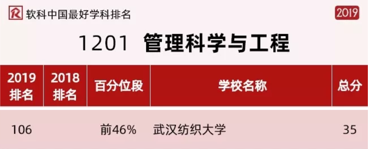 近日,2019软科中国最好学科排名正式发布,公司2个学科上榜。其中,工商管理学科在157所上榜高校中位列第77,在湖北省属高校中位列第一,也是纺大首个进入前25%的学科;管理科学与工程学科在116所上榜高校中位列第106,入围全国排名前46%序列,在湖北省属高校中位列第二。