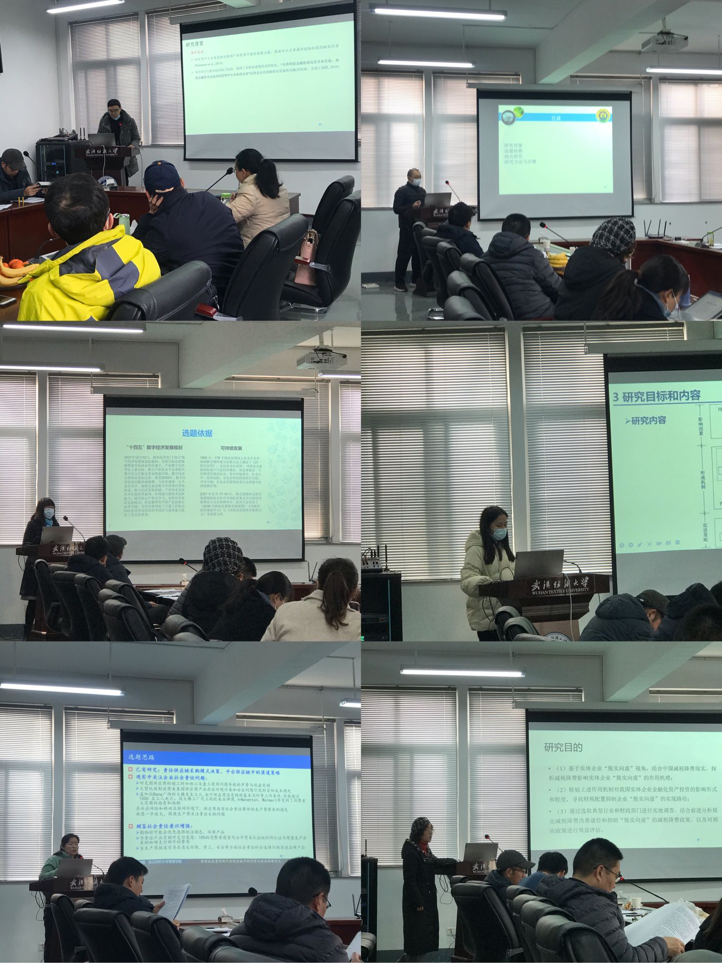 2022年1月17日上午,beat365官网中文版本在南湖校区西配楼N316会议室举办了2022年度国家基金项目申请交流研讨会。副董事长黄运平、科技处副处长王良波、研究生处副处长肖乃涛参加本次会议并对各位参会老师表示慰问。公司邀请到夏火松教授、王济平教授、李小丽教授、张星教授、余牛教授作为专家评委,对教师们的申请书给予建议和指导。本次活动特邀了公司党委滕胜娟书记参与,会议由副经理吴锦锋教授主持。