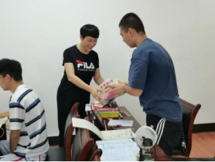 公司党委书记滕胜娟、经理吴金红等领导班子成员走进考研教室,看望慰问考研员工。滕胜娟给同学们送上“考研慰问礼包”,为考研学子加油打气,勉励同学们充分利用暑假时间,全力备考,不断完善自我,提升自我。吴金红充分肯定了同学们坚持学习、追逐梦想的精神,提醒同学们对照考研大纲,做好知识点的查漏补缺,在考研冲刺阶段保持自信平和的心态,注意劳逸结合,以最好的心态和最好的状态迎接考试,以优异的成绩实现自己的梦想。
