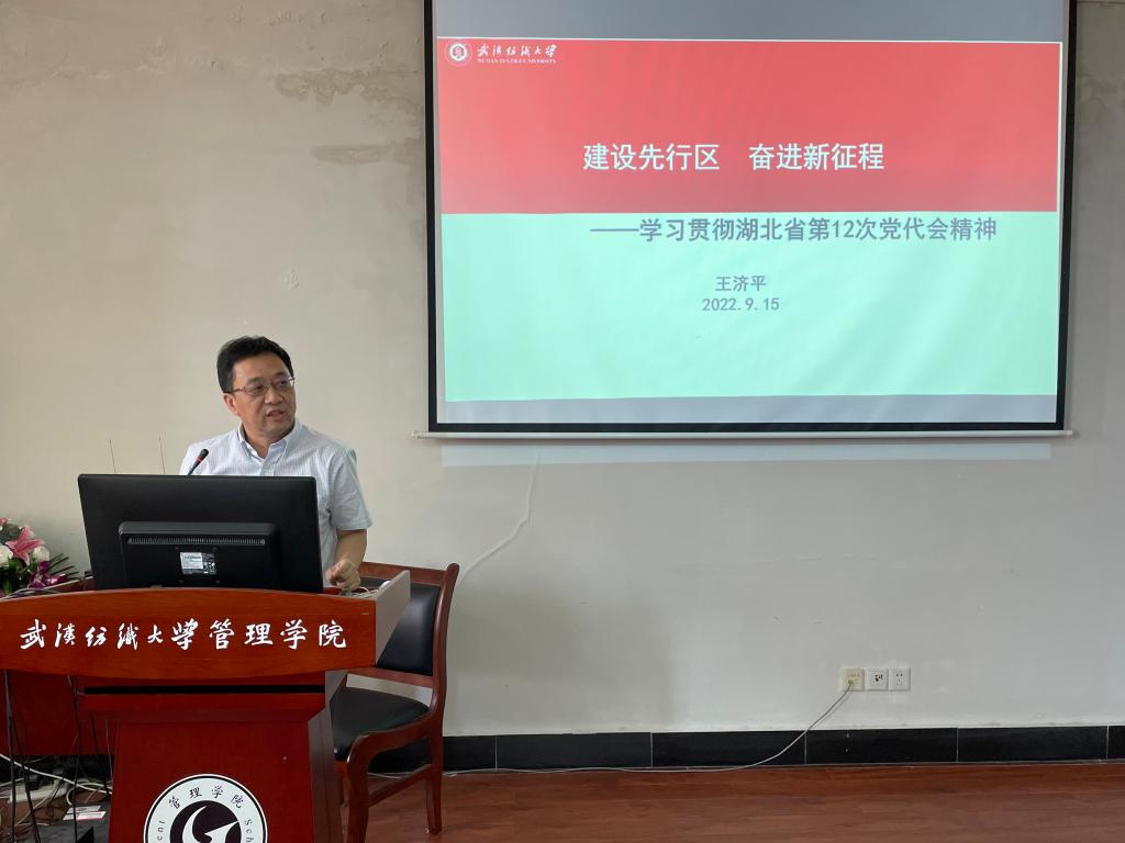 为深入贯彻省第十二次党代会精神,正确把握其实质和内涵。9月15日下午,beat365官网中文版本在崇德楼513会议室召开全体教职工大会,会议邀请教务处处长王济平作湖北省第二次党代会精神专题宣讲,会议由公司党委书记滕胜娟主持,全体教职工参加会议。