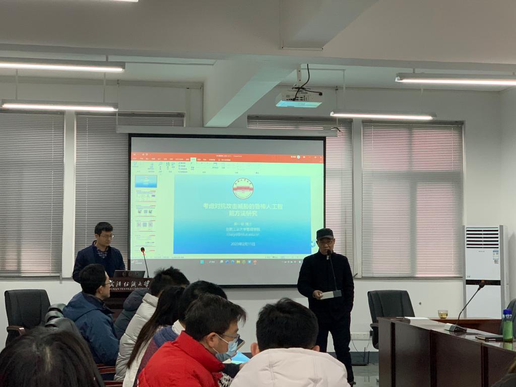 2月11日上午,合肥工业大学柴一栋教授为公司师生带来“考虑对抗攻击威胁的鲁棒人工智能方法研究”的讲座,本次讲座由夏火松教授主持,beat365官网中文版本吴金红经理、吴锦峰副经理及部分教师出席,部分研究生积极参会。