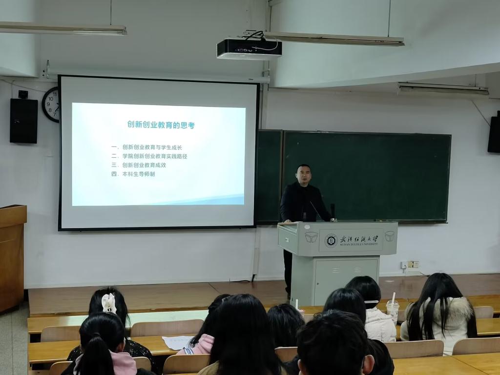 本次宣讲动员大会中,副经理张飞从创新创业与员工成长、公司创新创业教育实践路径、创新创业教育成效及本科生导师制四个部分为同学们做了详细介绍,并勉励同学们通过参加创新创业大赛的历练,在创新创业中增长智慧才干,激发创新活力,将知识转化为服务国家和社会的蓬勃力量。