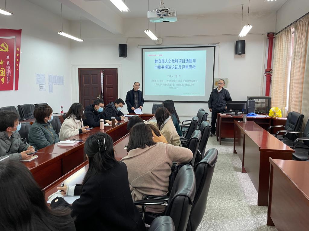 会上,曹勇教授结合自身多年申报立项经验和项目评审体会,从教育部人文社科项目选题要领与注意事项、评审标准与应对策略、以及申报书撰写论证技巧及评审思考等方面进行了全面深入解读和剖析,并结合实际立项案例对如何提升国家基金申报成功率,提出了有效的策略建议。