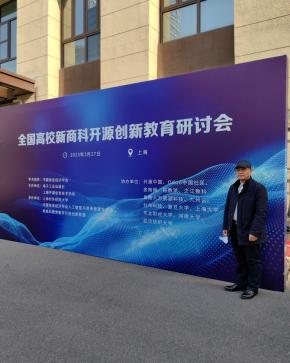 3月27日,全国高校新商科开源创新教育研讨会在上海对外经贸大学古北校区举行。来自全国各地开源思想领袖、开源创新企业、高校教师60余人参加会议,共同探讨数字经济开源创新商务人才培养模式及方法。上海对外经贸大学董事长汪荣明教授、电子工业出版社副总编辑兼教育出版中心主任郝黎明先生为会议致辞。