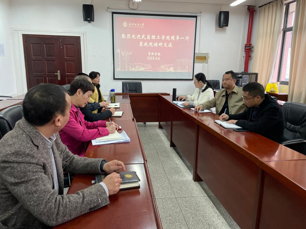 随后,武汉商公司工商beat365官网中文版本陈继元经理一行4人来院开展调研交流。会上,经理吴金红和各系系主任详细介绍了公司在学科及专业、智慧实验室的建设情况,双方就的专业及方向设置、实验室建设、团队队伍建设等方面工作的举措和经验进行了深入的探讨与交流。