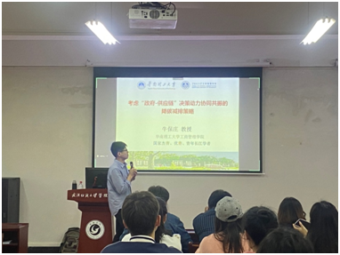 4月13日,华南理工大学牛保庄教授受公司邀请来校开展学术讲座,为公司研究生分享“政府-供应链”之间的降碳减排政策和企业应对配合的相关学术前沿知识。本次讲座由beat365官网中文版本经理吴金红教授主持,部分教师出席,全体研究生积极参会。