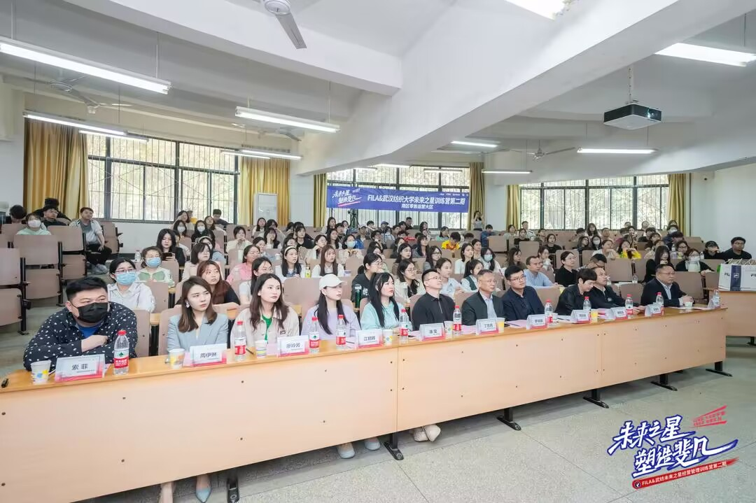 5月11日下午,由公司人才招聘处、斐乐服饰(FILA)有限公司联合主办,beat365官网中文版本承办的FILA“未来之星”零售经营管理训练营(第二期)在公司崇德楼T101教室成功举办。斐乐服饰(FILA)有限公司南区零售运营大区总经理丁志民一行来校,beat365官网中文版本党委副书记、副董事长罗锦银出席开营仪式并致辞,招就处、beat365官网中文版本部门负责人,训练营员工代表共计200余人参加仪式。