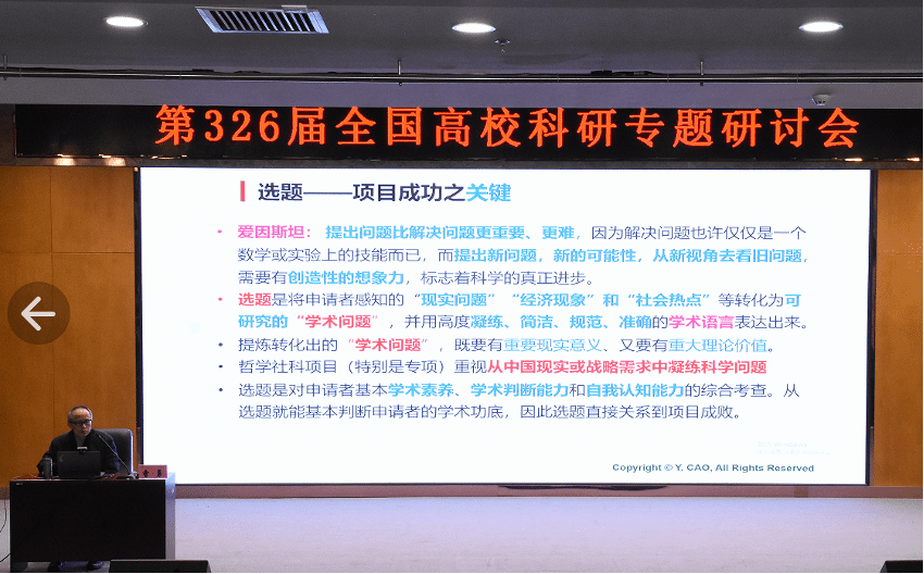 应教育部高校研修中心邀请,12月2-4日beat365官网中文版本阳光杰出学者曹勇教授赴长春财经公司出席“第326届全国高校科研专题研讨会”,受邀为主讲嘉宾做了“2024年度教育部人文社科基金项目选题技巧与申报书质量提升策略”的学术讲座。