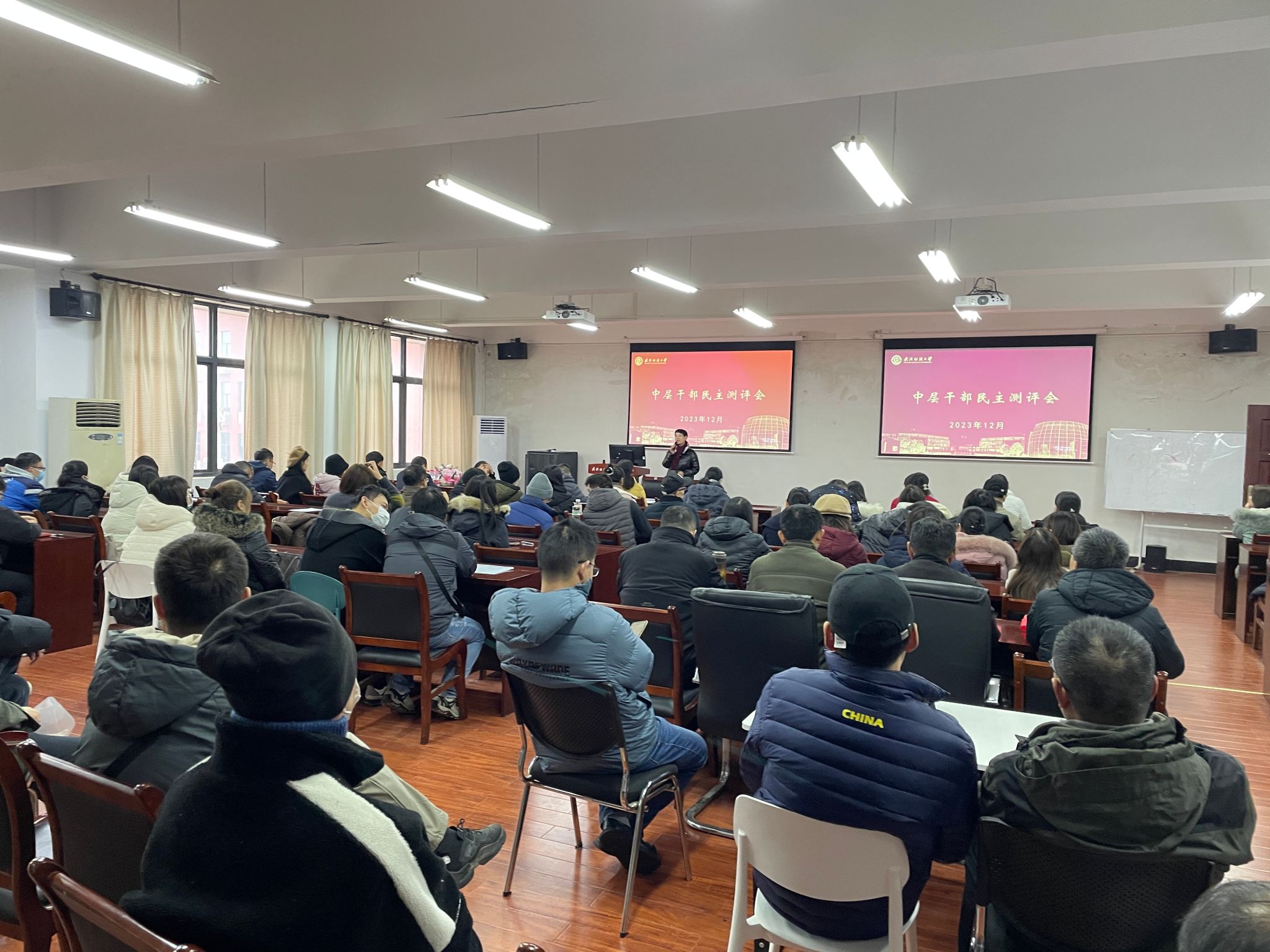 12月14日下午,beat365官网中文版本在阳光校区崇德楼531会议室召开全体教职工大会暨民主测评会,公司委派人事处处长李伟来院进行民主测评,公司全体教职工参会,会议由公司党委书记滕胜娟主持。