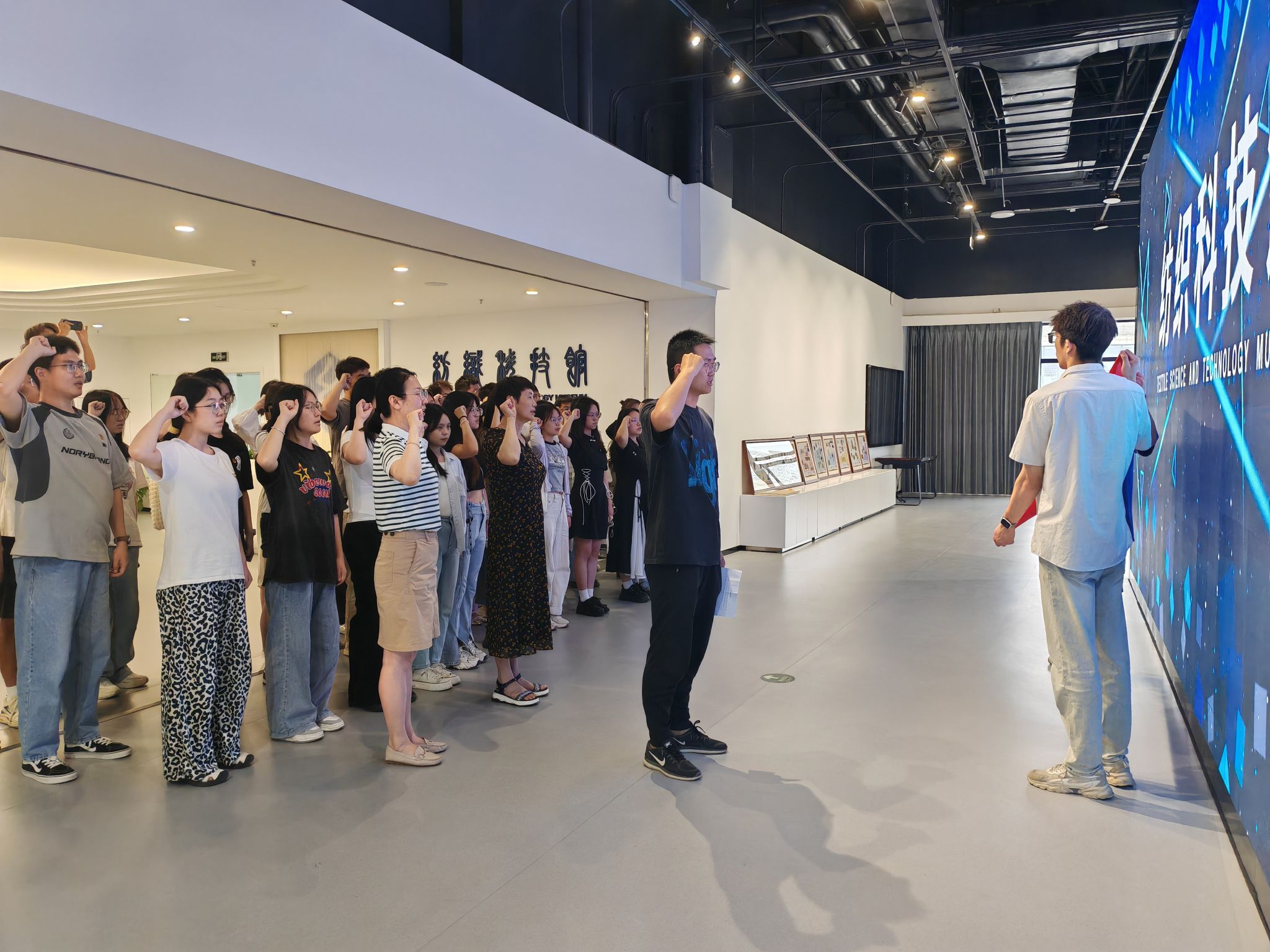 同学们依次参观了纺织缘、传统纺织、现代纺织、大纺织、超纺织、未来纺织六大展厅。在看到“织物版月面国旗”时,同学们深切感受到科研团队历时八年、持续攻关,克服从选材到制备等一系列困难,经历一次次失败后最终成功的拼搏故事。毕业生即将走向工作岗位或者是继续深造,可能都会经历挫折与磨难,需要正视和珍惜,将战胜挫折的经历与韧劲转化为成长的动力。从纺大校史到纺织在世界历史进程的重要作用,从公司的四大学科群到现代纺织的多学科交叉融合,从三维立体织物技术研发到未来医疗大健康方面的布局,“人造血管”“织物版月面国旗”“迷彩隐身衣”等新奇材料和技术,大家纷纷驻足观看讨论频频点赞,感慨生逢其时见证了公司的发展、科技的进步、纺织的魅力,也体悟到了奋斗的滋味和坚持的力量。